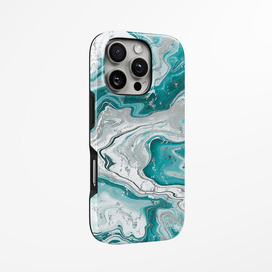 Silver & Turquoise Stream MagSafe iPhone Tough Case